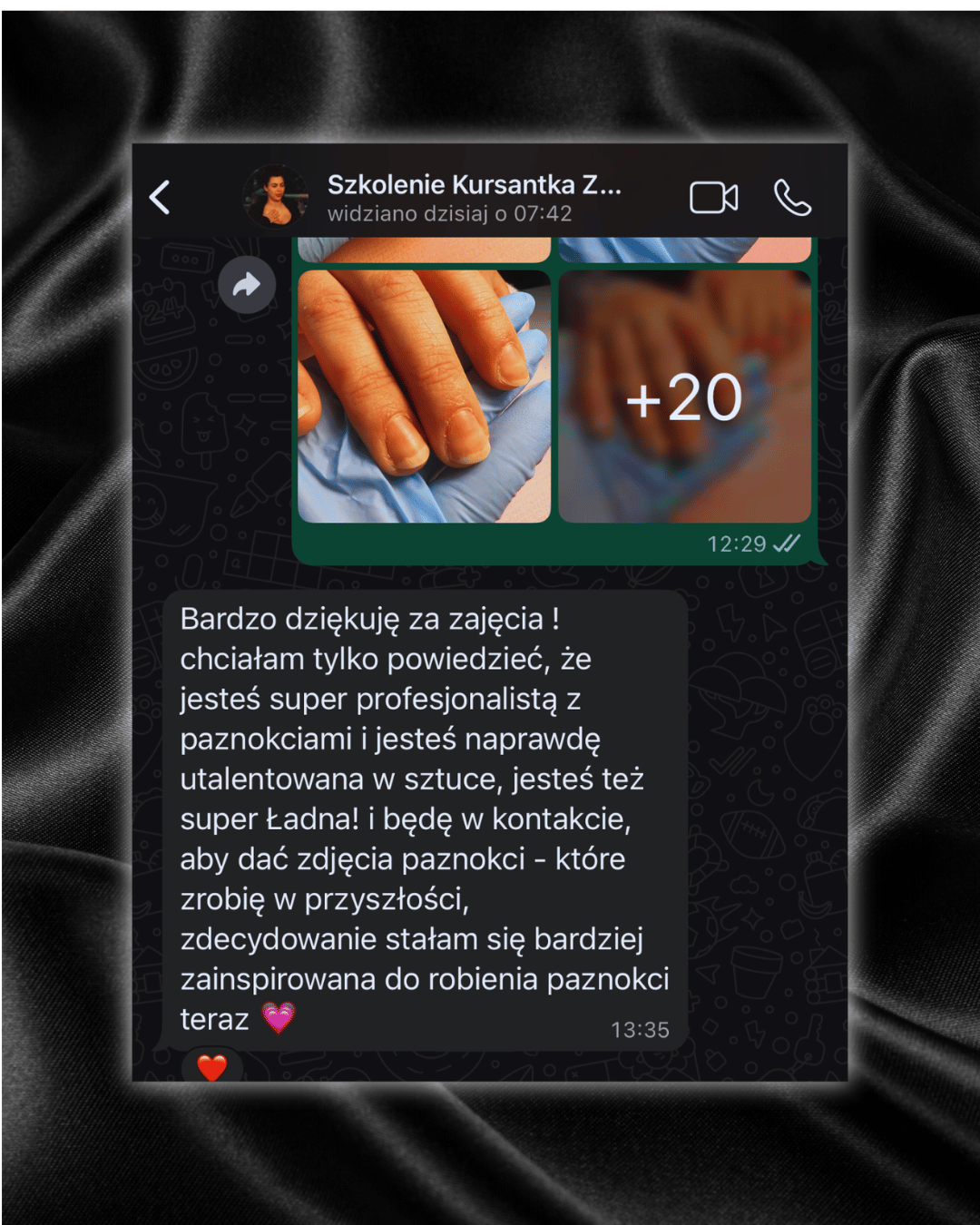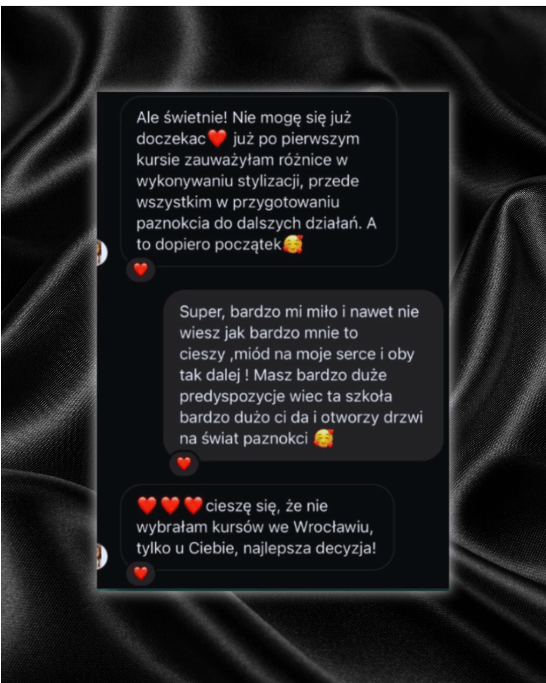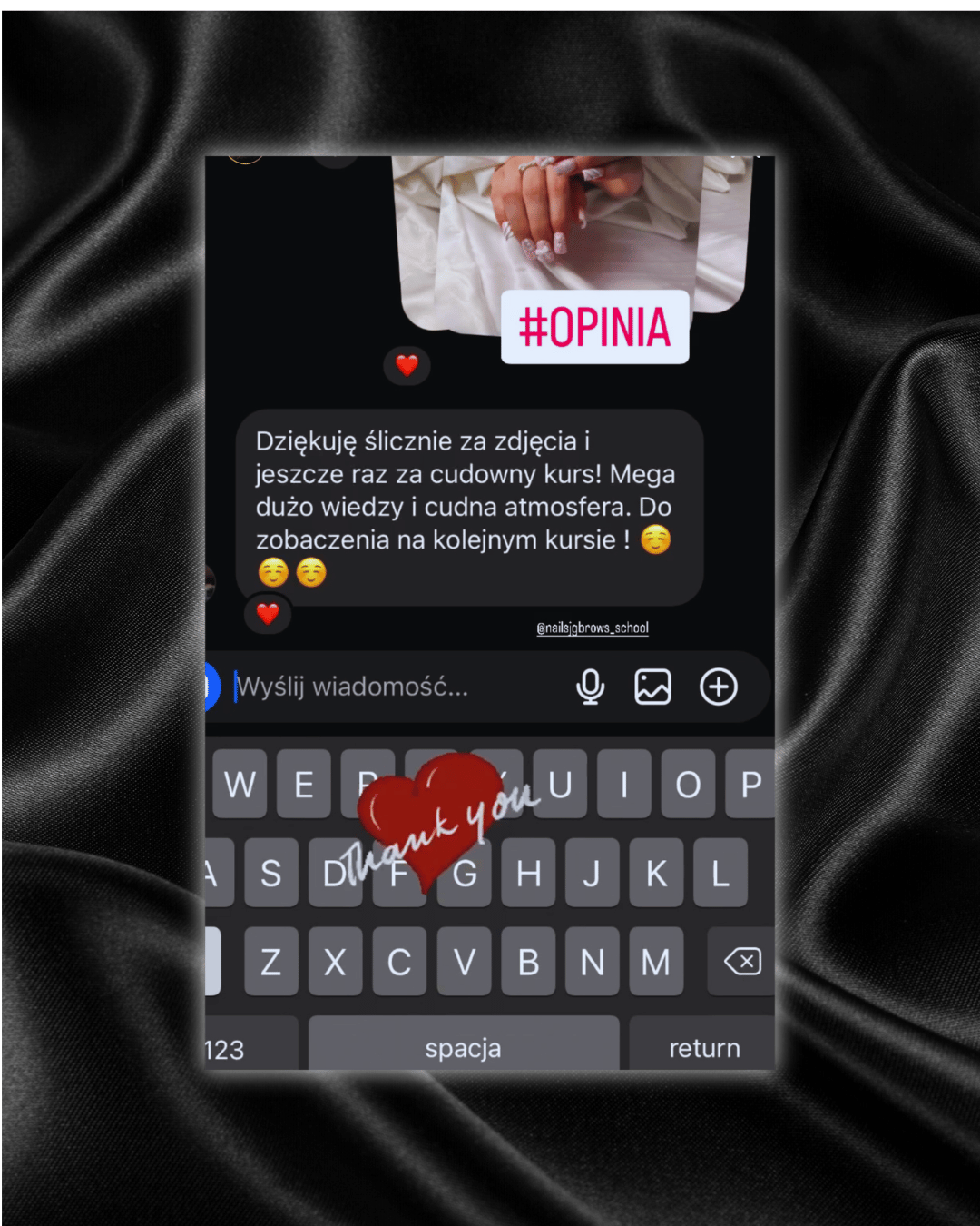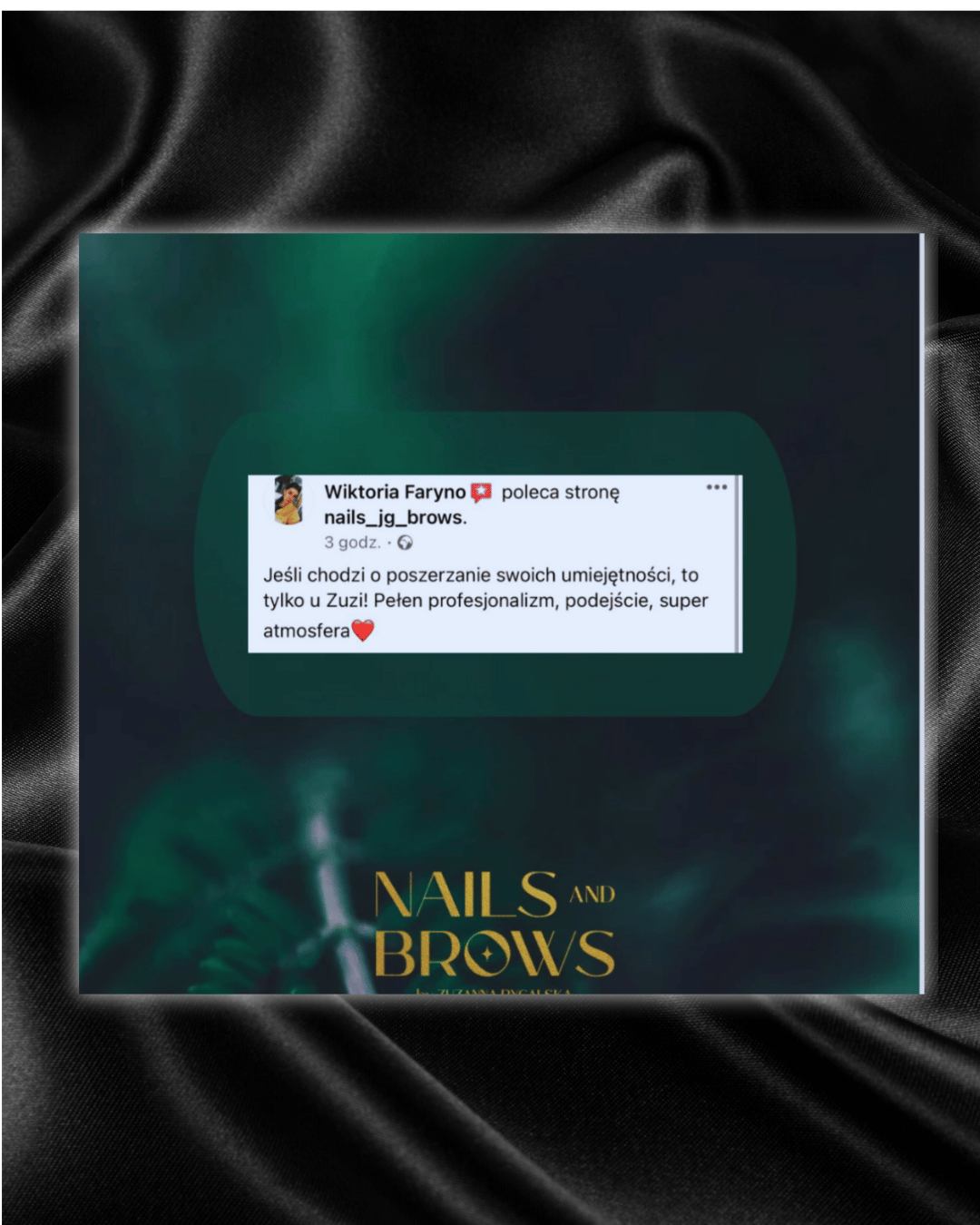 Co mnie skłoniło do wyboru akurat tego zawodu? Praca z klientkami a bardziej uszczęśliwianie ich to jedno, natomiast drugie – uwielbiam malować,tworzyć ręcznie rysunki, zdobienia dzięki temu spełniam się w swojej pracy w 100% a dodatkowo w momencie przekazywania wam wiedzy którą gromadzę od lat.